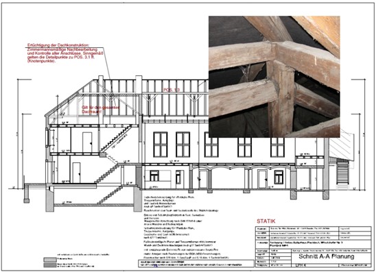 Statisch knifflige Knotenpunkte wurden unter Beachung der denkmalpflegerischen Forderungen, vorbildlich mit einfachen Mitteln gelöst. Von der vorhandenen Substanz so viel wie möglich erhalten und für kommende Generationen konservieren, das war hier der Anspruch für alle am Bau Beteiligten. Dieses Projekt, zeigt dabei exemplarisch, dass dabei nicht notwendigerweise Abstriche bei der Tragsicherheit gemacht werden müssen.